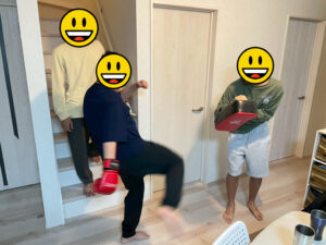 キックボクシングをしたりと、みんなでお互いを鼓舞しながら頑張っています!