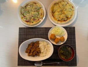 カボチャのコロッケや手作りのピザなどお腹いっぱい食べました。