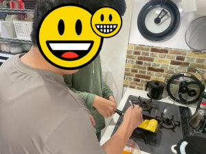 卵焼きを作れる生徒が手順を教えながら、協力して作っていました!
